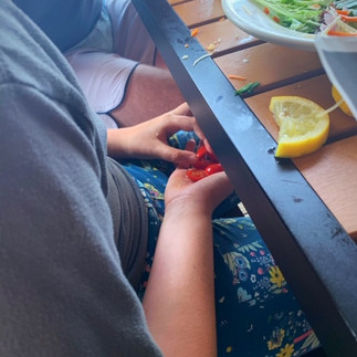 You see Ad, going out to eat is a different game of patience. There’s a lot of waiting that has been traditionally hard for you to understand… Waiting for a table. In your mind, why can’t we just sit with this family that is already enjoying their food? Insert agitation of others doing what you want to do. Waiting for food. In your mind, I guess we are eating ice, no problem I love ice! I’ll just freely stick my hand in each glass at the table to get some and collect any fruit garnishes anyone may have – thank you very much! Waiting for the check. Clearly, you’re more of a fan of the dine and dash! In your mind you think - I’m done eating, now we should go, no bother if everyone else is eating or waiting to pay. Historically either daddy or I would take you to the car or to walk around outside while everyone else finished up and yes paid.