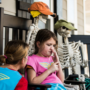 We looked at some super spooktacular decorations up close, even touching a few to see they were just pretend. In fact you independently even cozied up with a skeleton on a front porch rocking chair. It was pretty funny.